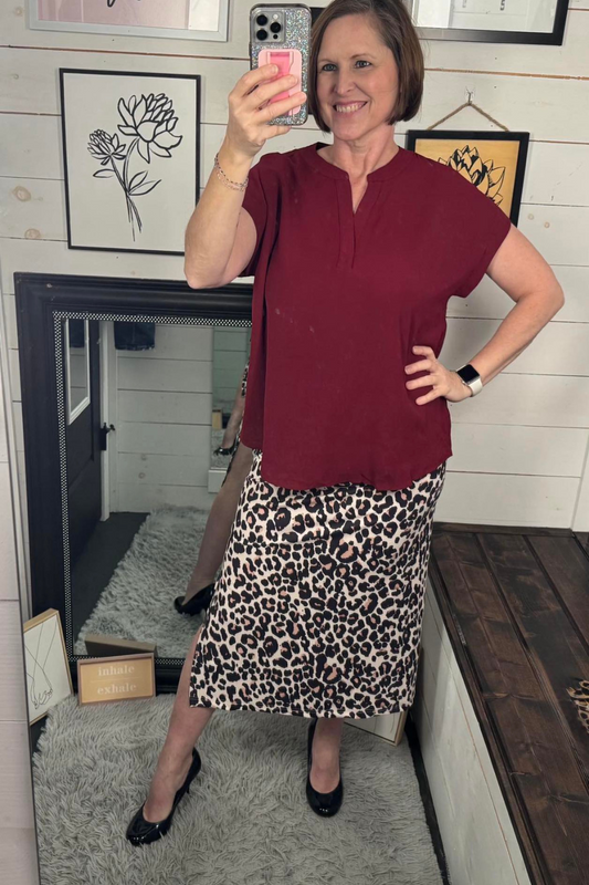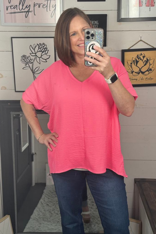 Ashlyn Ribbed VNeck Top - Fuchsia