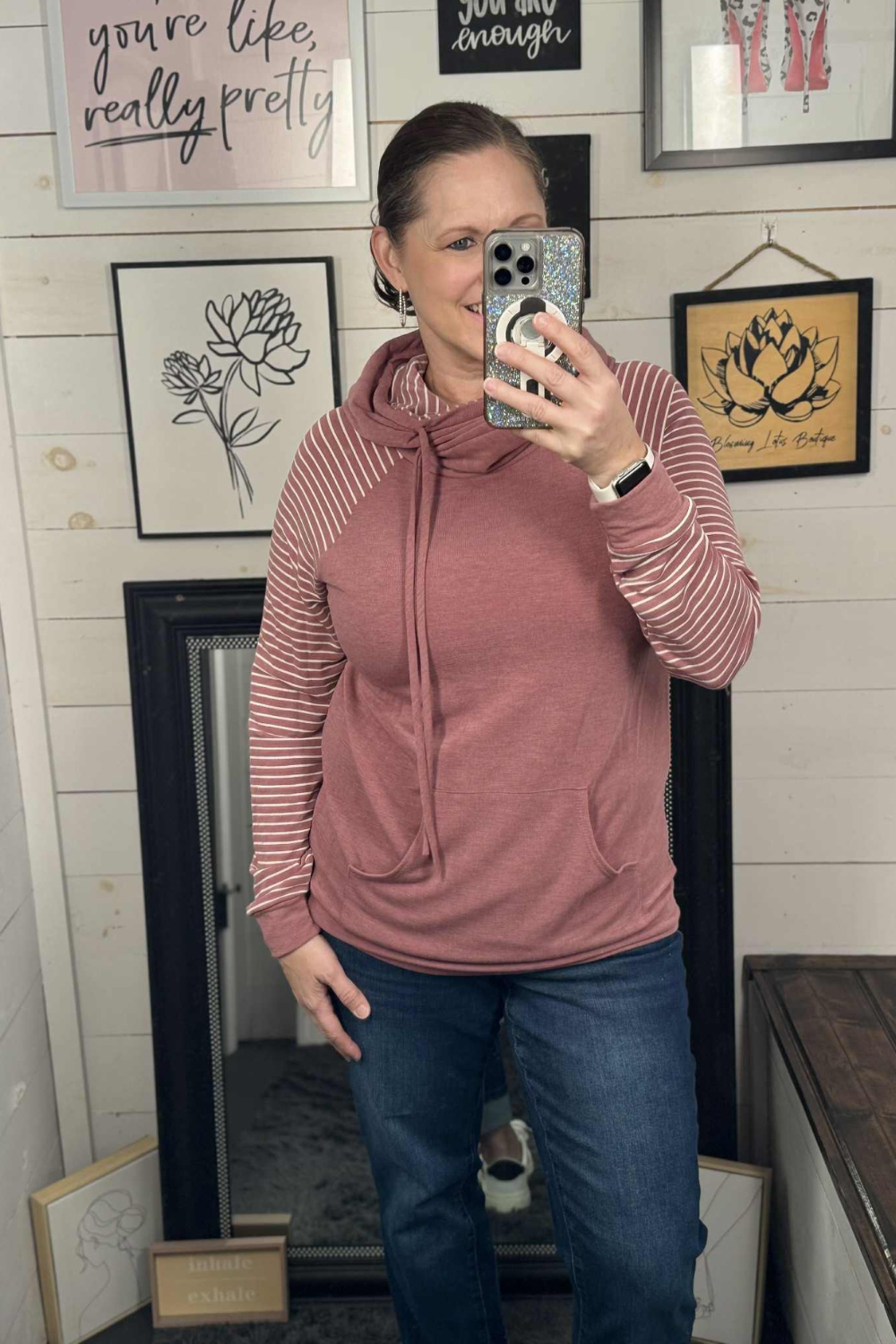 Wrap yourself in cozy comfort with this laid-back Marley Stripe knit hoodie that's equal parts style and substance. The contrast stripes running down the sleeves add a fun pop of visual interest, while the adjustable drawstring lets you customize your fit. Slip your hands into the front pocket for warmth and convenience, and enjoy the structured banded hem that keeps everything in place. Perfect for casual days when you want to feel effortlessly put-together without sacrasificing comfort.