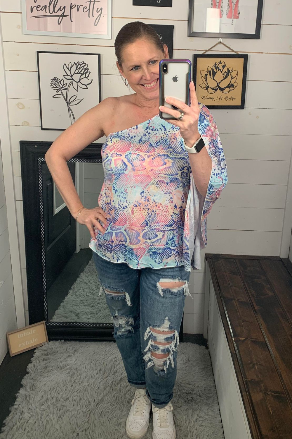 We have all the heart eyes for this Sassy Moment Colorful Snakeskin Print top! This top features a one shoulder style, stretchy material, and colorful snake printed fabric. SOO CUTE! Sassy is an understatement!